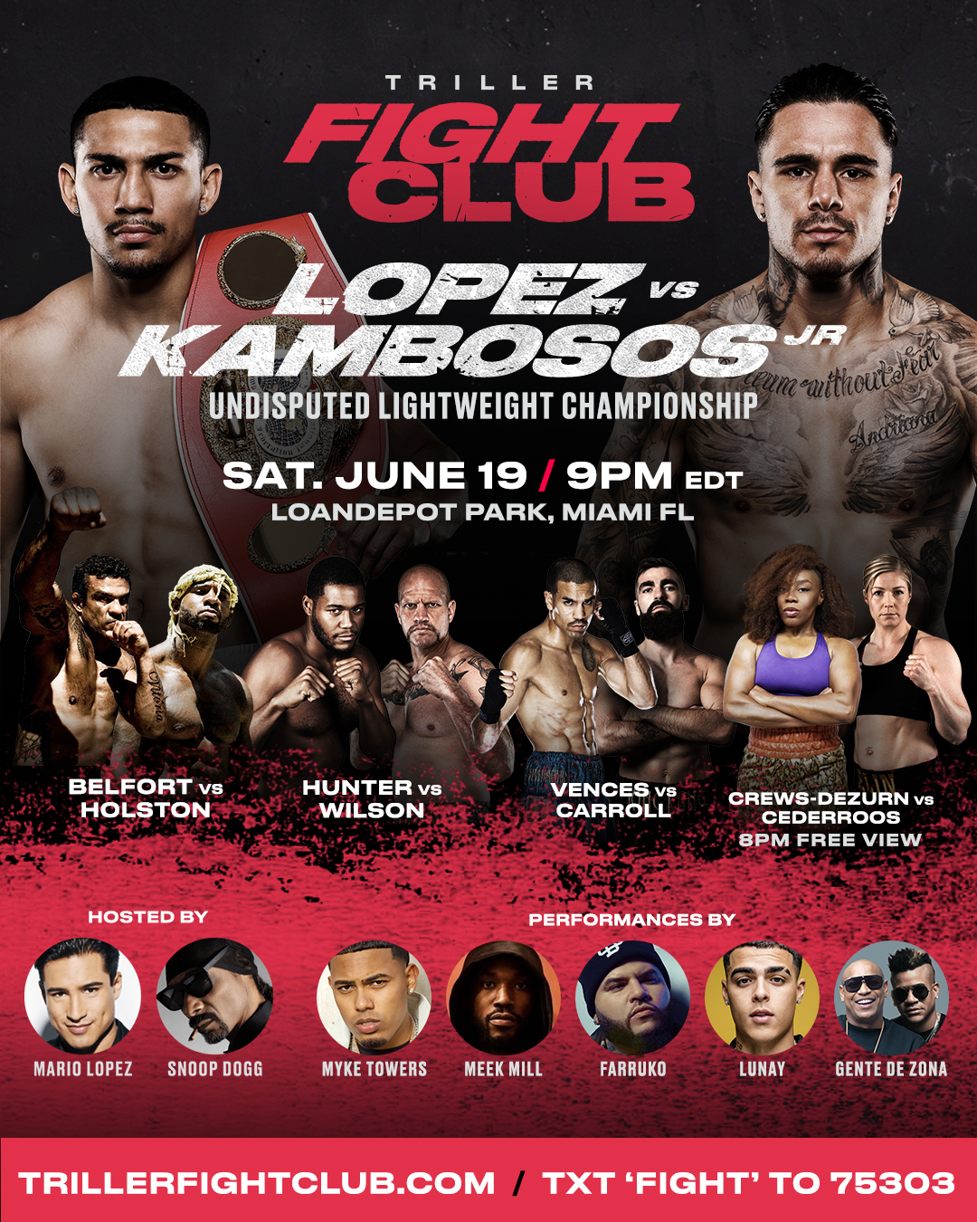 Triller On Twitter June 19 In Miami Loandepotpark Trillerfightclub Lopez Vs Kambosos Jr Crews Dezurn Vs Cederroos Hunter Vs Wilson Vences Vs Carroll Tickets Available Here Https T Co Ukomaa4zor Https T Co 9fitr11feg Twitter